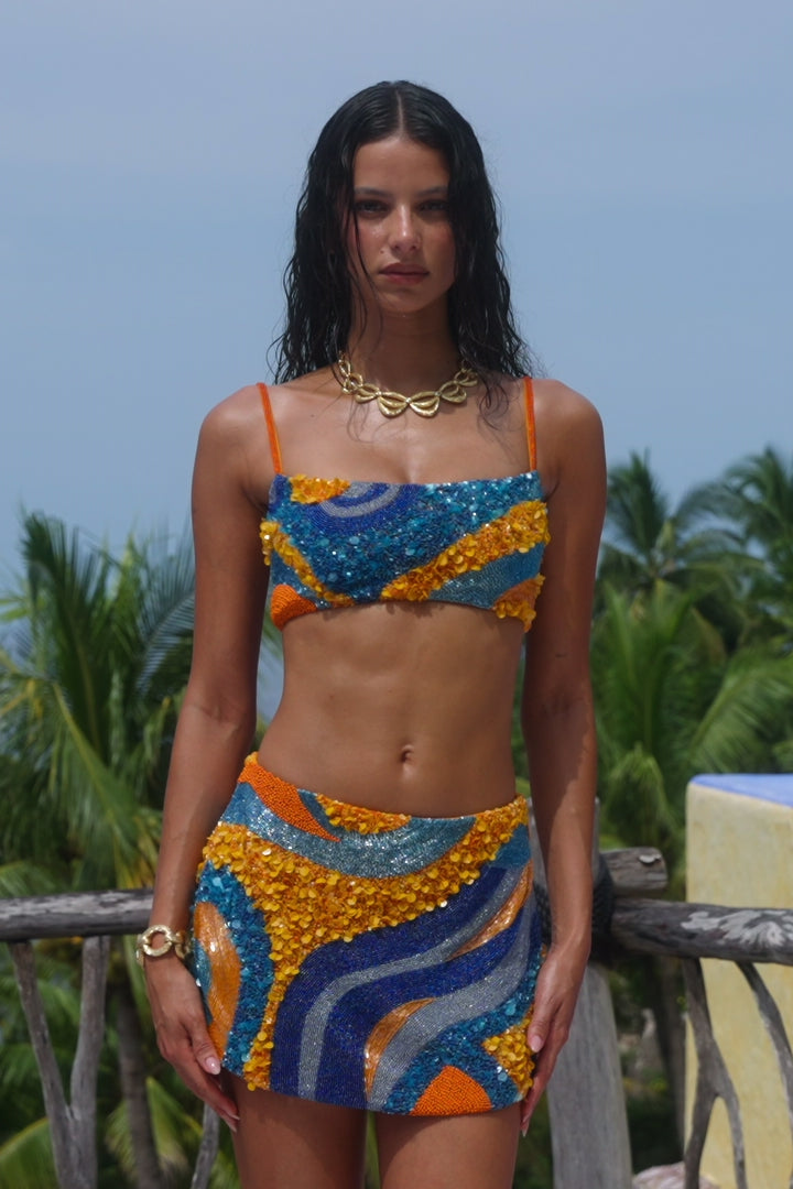Zahira Hand Beaded Mini Skirt in Sequinda